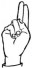 На ћирилици написано АНДЈЕЛИНА ЖИЖОВИЋ састоји се из 16 слова [?]. Исписано ћириличном једноручном азбуком за глувонеме:
